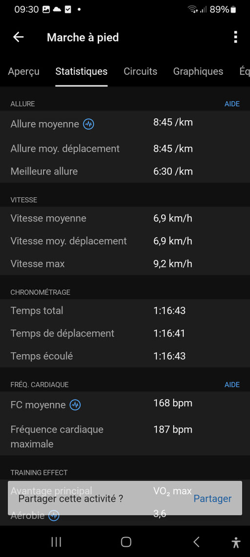 Petit conseil, suite au constat de ce soir : il vaut mieux démarrer un peu plus lentement et augmenter progressivement l’allure afin de pouvoir maintenir jusqu’au bout une bonne vitesse. 😊