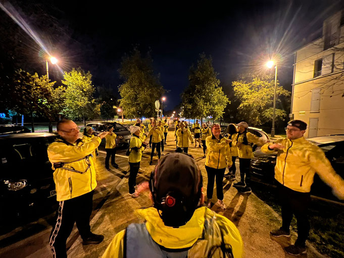 En début de soirée, Louisa a eu la gentillesse de venir « spécialement » équiper les nouvelles recrues et récupérer les tenues de celles et ceux nous ayant quitté pour cette saison. Malheureusement elle n’a pu rester marcher avec nous pour raisons personnelles.