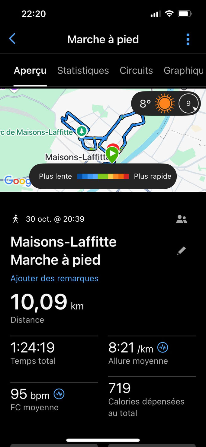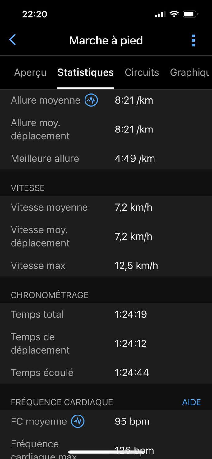 Ralenti par la traversée d’un hérisson, je n’ai pu excéder personnellement un 5.99 km/h de moyenne, mais le groupe lui était à 6,3 km/h.